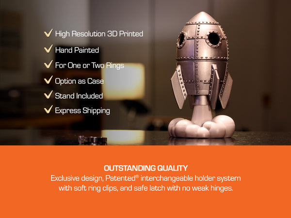 Patented Rigid Holder System® - Interchangeable insert engineering, without any fabric or foam. Hold safely one, two or more geek engagement rings, or store it as a jewelry case. Allows the perfect assembly of the Geek Ring Box, without any screws or weak hinges.
